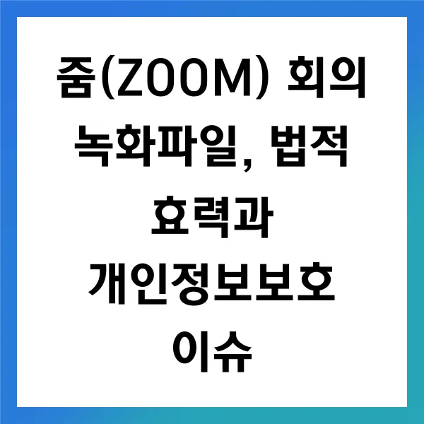 줌(ZOOM) 회의 녹화 파일의 법적 효력 과 이를 둘러싼 논의는 최근 많은 주목을 받고 있습니다. 특히 회의 녹화 파일이 법적 분쟁에서 증거로 사용될 수 있는지 에 대한 다양한 사례와 판례 분석은 중요합니다. 녹화 파일의 법적 지위를 다루는 주요 이슈로는 당사자 간의 동의 여부 , 개인정보 보호 문제 , 녹화의 변조 가능성 등이 있습니다. 이러한 분쟁의 사례와 판례를 살펴보겠습니다.